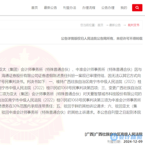 本院受理的上诉人亚太(集团)会计师事务所(特殊普通合伙)、中准会计师事务所(特殊普通合伙)因与被上诉人于畔及原审被告天夏智慧城市科技股份有限公司、海通证券股份有限公司证券虚假陈述责任纠纷一案现已审理终结,因无法以其它方式向你方送达法律文书,现向你方公告送达(2024)桂民终397号民事判决书。