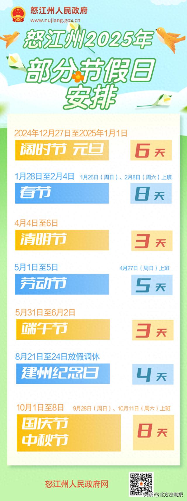 《怒江州2025年部分节假日安排》