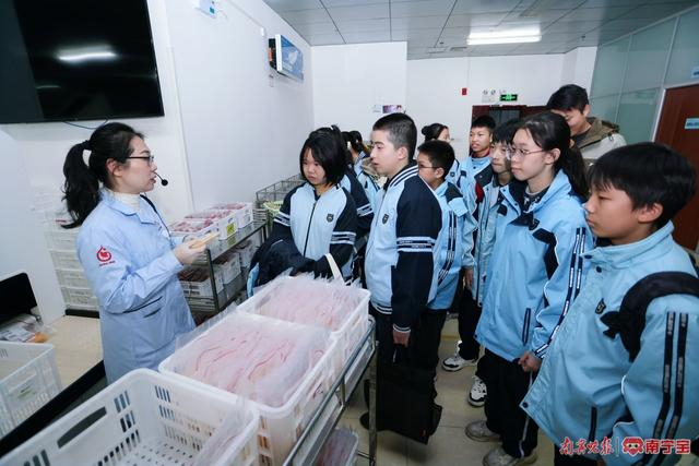 南宁市第三十五中学师生参观采供血业务科室,体验“一袋血的爱心之旅”。 (由南宁中心血站提供)