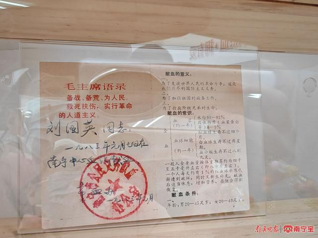除了高新科技手段,此次科普馆扩建还有一个最大的亮点——广西首个无偿献血收藏馆即羊建明收藏馆亮相。场馆内展出了多项国内各地早期的纸质献血证、纪念徽章等有意义的物件,记录了一段段动人的献血故事。