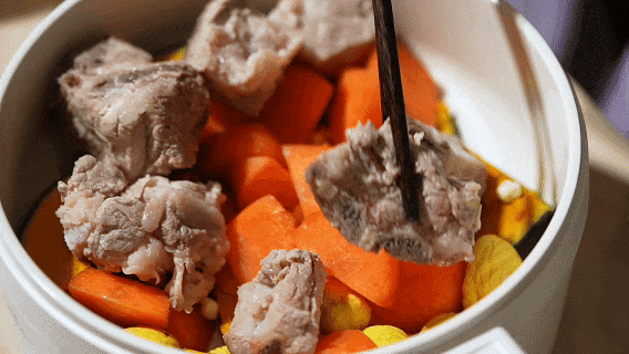 3.加入适量清水,把备好的食材入锅烹煮,待水烧开后,转小火慢炖1.5小时左右。