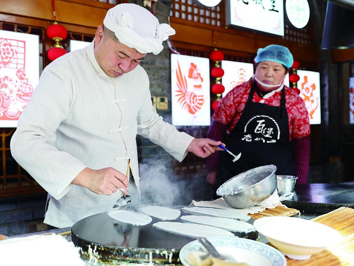 赵延东告诉记者,子长煎饼在当地人的饮食中占据着重要地位,更是逢年过节时必备菜肴之一,“它寄托着人们对未来美好生活的期许。”