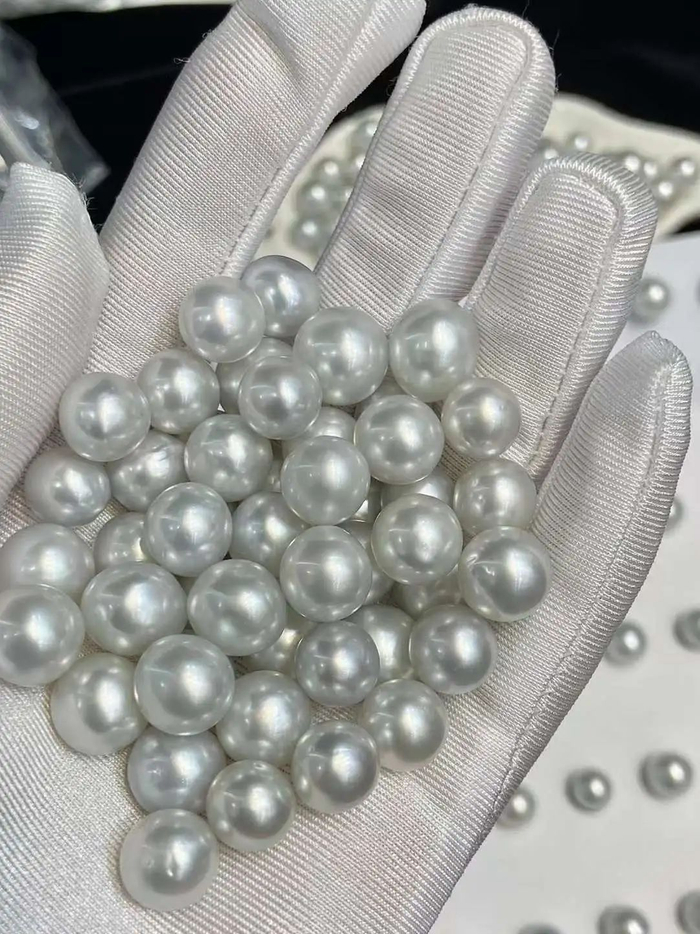 看我们的人造澳白珍珠和天然珍珠对比,几乎看不出差别!