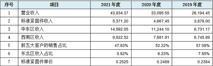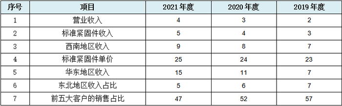 发行人2019年度向第四大客户重庆宏立至信科技发展集团有限公司(简称:“重庆宏至”),销售紧固件、锁具2,136.87万元,占当年营收比例8.16%,2020年度该客户上升为第三大客户,发行人向其销售3,169.32万元,占比9.58%。2021年度该客户跌出前五大客户名单,而发行人2021年度前五大客户的最低上榜额为2,497.76万元,发行人若保持对重庆宏至2020年度的销售额,则该客户似乎不该跌出发行人前五大客户榜。