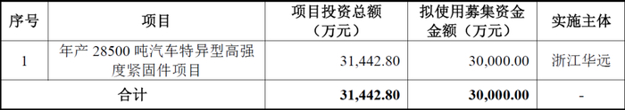 从上表可见,发行人本次上市只为一个“年产28,500吨汽车特异性高强度紧固件项目”,募资额30,000万元,可能不及创业板平均融资额7.07亿元的半数水平。