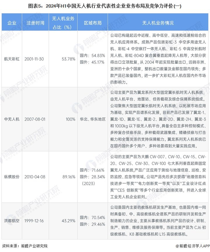 4、 中国无人机行业企业业务布局及竞争力评价