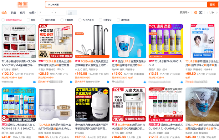 《消费者报道》记者在各电商平台搜索“TCL净水器”,发现各家店铺基本已经不售卖整机,只售卖一些替换用的净水器滤芯。记者咨询其中一家店铺,客服表示,目前只有1款几年前的旧款TCL净水器售卖,售价在1000元左右。