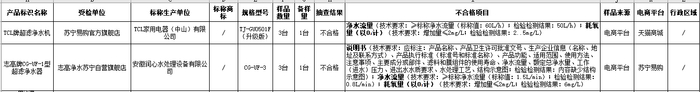 另外,1批次标称由安徽润心水处理设备有限公司生产的“志高牌CG-UF-1型超滤净水器”也在此次抽检中被检出不合格,受检单位为志高净水苏宁自营旗舰店,不合格项目为说明书、净水流量、耗氧量(以O₂计)。