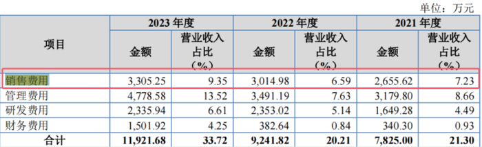 报告期内,亚美科技的销售费用占营业收入的比例分别为7.23%、6.59%和9.35%,明显高于同行可比公司。
