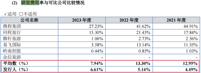 招股书显示,报告期各期,亚美科技的研发费用金额分别为1,649.28万元、2,353.02万元和 2,335.94万元,研发费用率分别为4.49%、5.14%和6.61%;同期该公司的研发费用均值分别为12.95%、13.3%和7.94%。由此可见,亚美科技的研发费用率明显落后于同行可比公司。