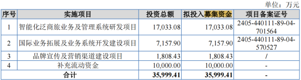 招股书显示,此次IPO,亚美科技计划募集资金3.6亿元,其中,1.7亿元用于智能化泛商旅业务及管理系统研发项目,0.72亿元用于国际业务拓展及业务系统开发建设项目,0.18亿元用于品牌宣传及营销渠道建设项目,1亿元用于补充流动资金。