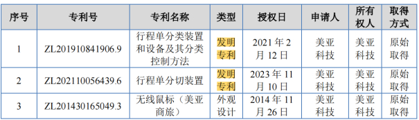 招股书显示,截至报告期末,亚美科技拥有专利3项,其中已授权的发明专利2项,外观设计专利1项。