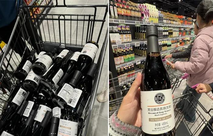11月25日,胖东来天使城开门营业,众多市民和外地顾客涌入超市,争相抢购这款DL非转基因黑豆酿造酱油,货架上的产品瞬间被一扫而空。