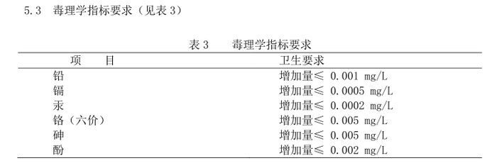 《生活饮用水水质处理器卫生安全与功能评价规范》规定了生活饮用水水质处理器的定义,与水接触材料的卫生要求,卫生安全性与功能性试验及出水水质要求。该规范明确要求,水质处理器卫生安全性试验采用整机浸泡试验方法,先用纯水注入处理器冲洗,然后注入纯水于室温浸泡24小时,测定浸泡水。浸泡后水与原纯水比较,增加量不得超过所列限值,其中,铅增加量应≤0.001mg/L,镉增加量应≤0.0005mg/L。