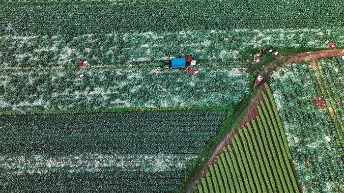 河北省承德市丰宁满族自治县大滩镇农民在收获蔬菜。新华社 发