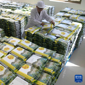近年来,丰宁县通过建设全国有机小米示范基地,标准化、规模化发展有机小米种植,提升小米附加值,促进农业增效和农民增收,助力乡村振兴。图为工人在检查包装完成的小米产品外观。王立群 摄