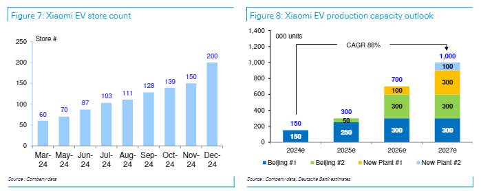 不过,由于初始销量较少以及研发费用较高,德银预计小米电动汽车业务将在2024年出现亏损,但在2026年首次盈利,预计随着产品结构的完善和高价产品的引入,2024-2027年间实现平均售价(ASP)和盈利能力的持续增长。