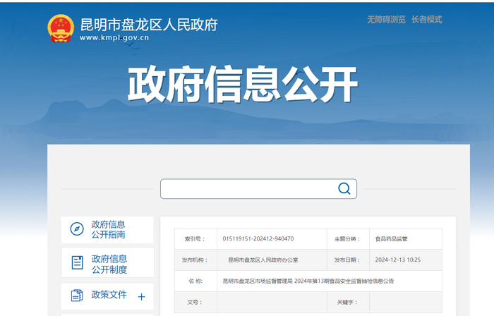 昆明市盘龙区市场监督管理局2024年第13期食品安全监督抽检信息公告