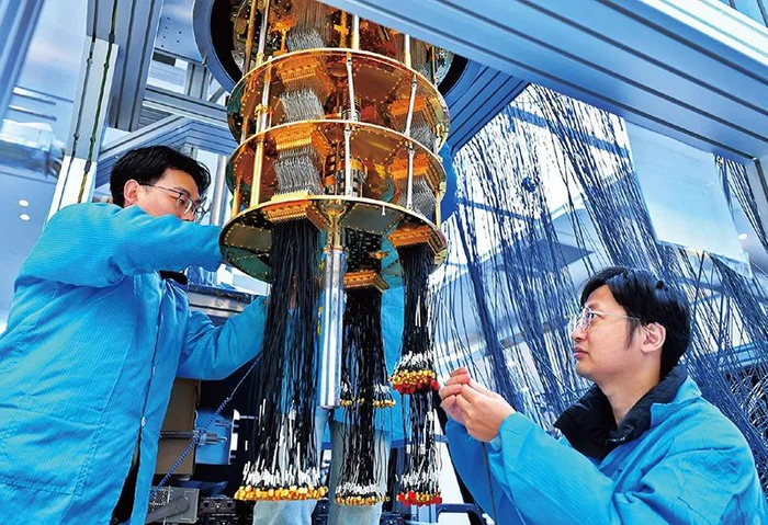 量子科技是新一轮科技革命和产业变革的前沿领域。近年来,安徽全力打造量子科技、产业“双高地”,已成为国内量子科技研究和产业化的重要基地。图为2024年11月25日,在本源量子计算科技(合肥)股份有限公司实验室内,技术人员正在对量子计算机进行测试。 安徽日报社供图 程兆/摄