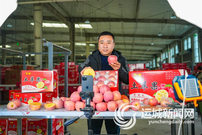“直播间的家人们,现在你们看到的苹果来自运城万荣。你们看这个苹果红润诱人、香甜脆嫩,有需要的家人们点击下方小黄车,直接购买。”在五福村数字农业孵化中心运城市杨爱笑电子商务有限公司的仓库一角,主播正在热情洋溢地讲解着手中的苹果。
