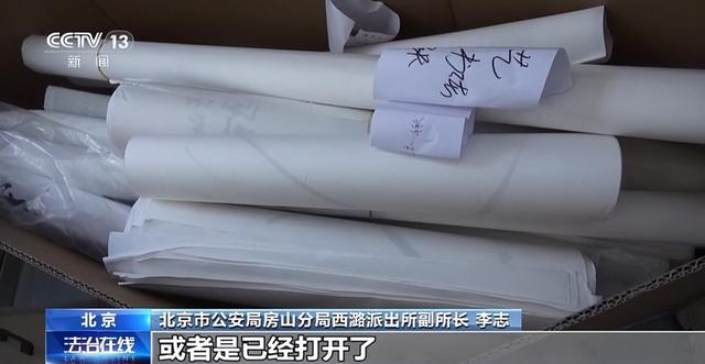 北京市公安局房山分局西潞派出所所长 张志国:利润非常高,购买这些字画的成本也就四五十元,在网上售卖能卖3000元到5000元,甚至上万元。它的差价非常大,仅仅两个月就获利四五百万元。