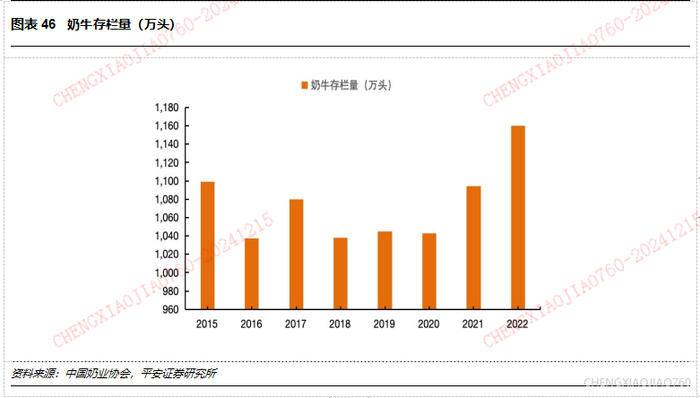 供给扩大,供需剪刀差放大。供给端来看,我国上游奶牛养殖行业进行了一轮规模化扩产,2023年本国供应生牛乳产增长6.74%至4.20千万吨,且随奶牛单产与奶牛存栏量提升,供需剪刀差放大,导致本轮原奶价格下行超预期。但目前已边际进入温和产能出清阶段,后续随着需求的恢复,板块供需关系有望迎来改善。