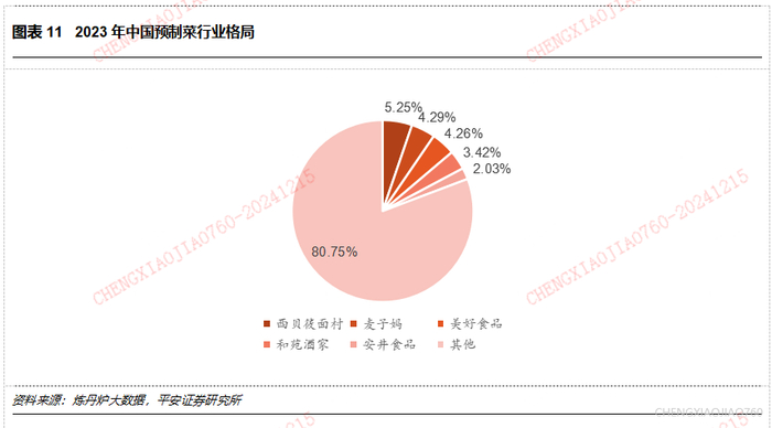 行业格局高度分散,但集中度提升是大势所趋。2023年中国预制菜行业CR5仅19.25%,份额排名第一的“西贝莜面村”仅占5.25%市场份额。相较日本上世纪80年代行业CR5近75%,我国预制菜行业高度分散,整体处于模式探索阶段,静待大单品诞生和行业龙头出现。