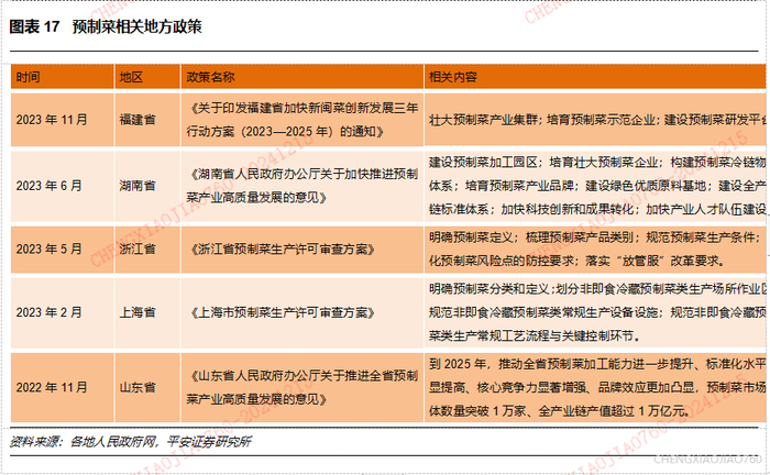 2024年六部门联合发文,明确预制菜定义和范围。2024年3月21日,市场监管总局等六部门联合印发《关于加强预制菜食品安全监管 促进产业高质量发展的通知》,首次在国家层面明确预制菜范围。在地方层面,多个省市级政府也出台了相关政策,支持预制菜产业发展。