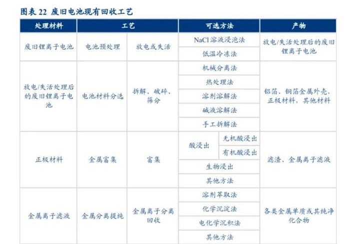 电池回收的深度处理是在预处理放电、拆解、破碎、分离后,将电极材料溶解浸出,使 其中的金属及化合物以离子形式进入到浸出溶剂中,再分别进行对应金属的分离回收;主要可分为浸出和提取两个阶段。