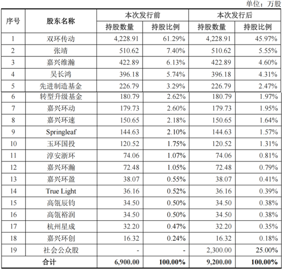 本次发行后,双环传动持有公司45.97%的股权,为环动科技的控股股东。