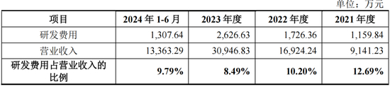 公司保持了较高的研发强度,研发费用率基本在10%上下。截至2024年6月30日,公司拥有专利权57项,其中发明专利18项。公司为国家级专精特新“小巨人”企业。