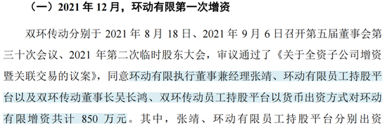 2021年12月,公司进行了第一次增资,公司执行董事张靖、双环传动董事长吴长鸿、公司员工持股平台、双环传动员工持股平台等成为新增股东。