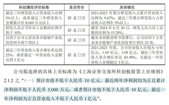 基于公司的产品特征、研发强度以及业绩表现等情况,公司完全符合科创板定位和科创属性,同时也满足所选上市标准。