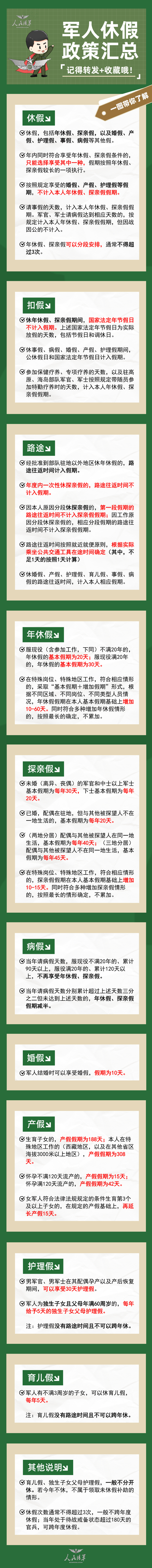 军人休假规定来了!还有军属探亲攻略→