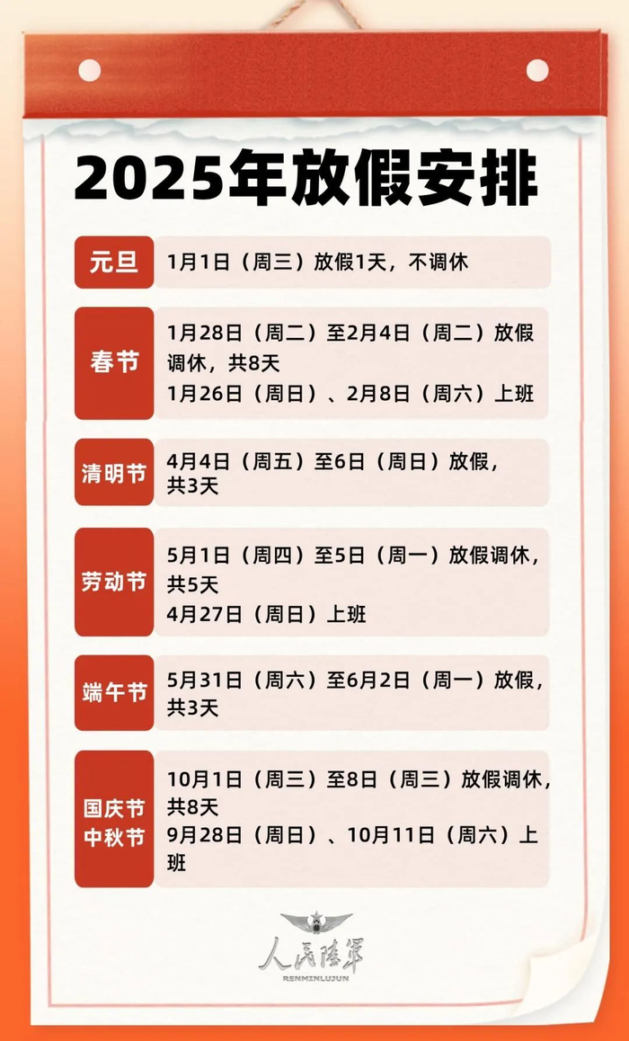 另附2025年放假调休日期的