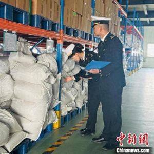 图为海关官员对出口产品进行检查。中新网记者 孙睿 摄