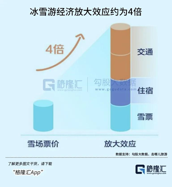 由于雪场地理位置一般远离市区,相比雪场门票,交通、住宿以及雪票,才是冰雪旅游中的花费大头,且价格不菲,导致冰雪旅游客单价较高,放大效应较为显著。