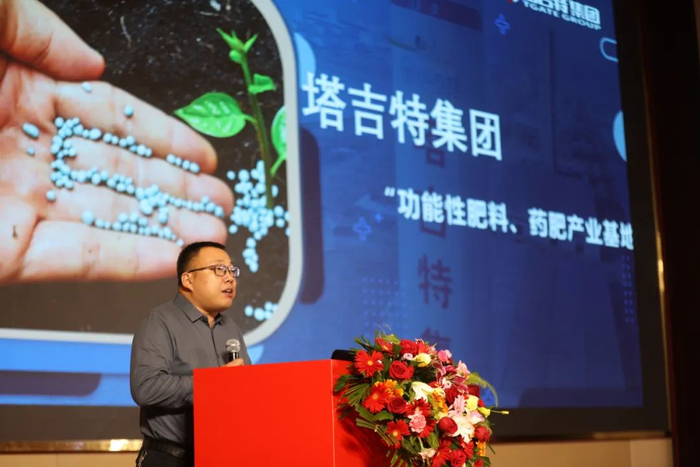 塔吉特集团总经理高少华对集团发展战略、未来定位及产品优势进行了深入介绍。据他分享,塔吉特集团下设多打粮生态肥业、塔吉特生态肥业、中海图腾肥业、昊天化肥业、新启力生态五个子公司,致力打造国内领先辐射全球的超大规模的肥料产业园区。项目总占地面积353亩,总投资102000万元,同期打造建设生态药肥生产基地,集氨酸工艺复合肥生产、聚氨酯包膜尿素生产、控释肥生产、硫酸脲复合肥生产、特种水溶肥生产为一体的化肥集群化产业基地。