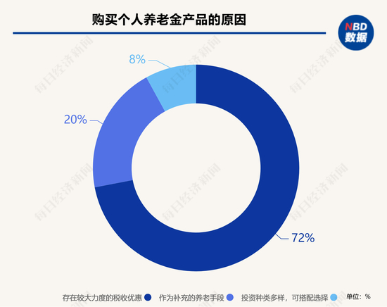 调研显示,超四成的上班族表示会考虑申请个人养老金账户并购买相关产品,在促使他们购买个人养老金产品的原因中,七成左右的上班族认为个人养老金存在较大的税收优惠力度,两成的上班族认为个人养老金可以作为补充的养老手段,仅有一成左右的上班族选择了个人养老金的投资类型和收益。由此可以看出,节税是上班族最为关注的点。