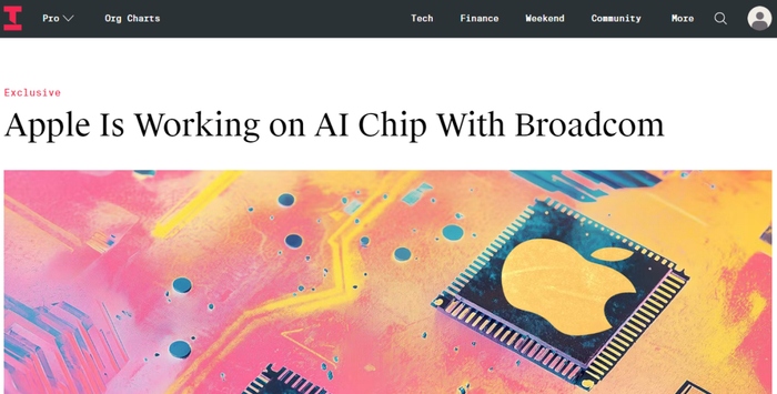 据The Information报道,苹果公司正与博通公司合作开发其首款专为AI应用设计的服务器芯片。