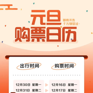 12月17日,按照铁路车票15天的预售期,旅客可以通过铁路12306网站、APP等购买元旦前一天(12月31日)火车票。12月18日可买1月1日车票,由于2025年元旦只有1月1日一天假期,意味着12月31日傍晚和晚上出发的火车票会更紧俏。