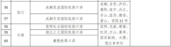 至此,适用对外开放口岸由原有的39个增加至60个。