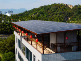 “阳明楼”是兴中村通过租赁形式引入的屋顶光伏产品,农户通过出租闲置屋顶给光伏电站项目获得租金收益,目前该村已有十余户安装。为最大化发电效率,产品采用5°人字坡设计,确保光伏板全年可接收足够光照,实现收益最大化。按屋顶安装105块光伏组件计算,农户在合作期间累计可获得屋顶综合收益近8万元。产品不仅隔热防雨,其设计结合中式建筑风格,也成为“绿化”乡村的一道风景。