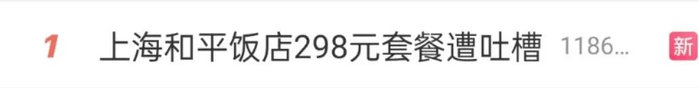 近日,有网友发视频吐槽上海和平饭店在某团购平台上线的298元团购套餐,该话题一度登上热搜第一。