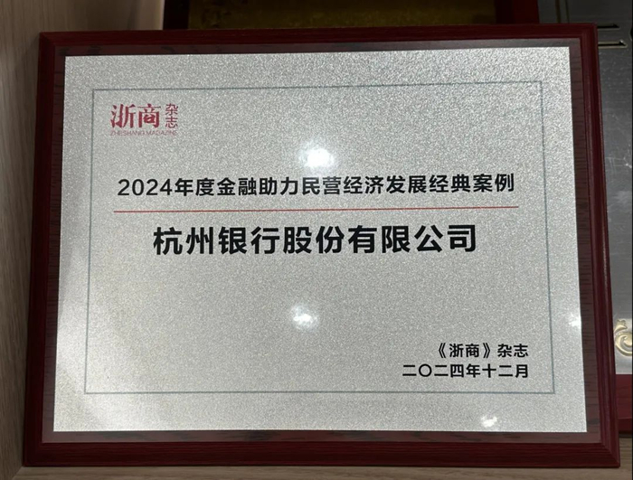 喜报 | 杭州银行获评“2024 年度金融助力民营经济发展经典案例”