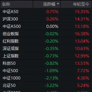 其他主要股指中,中证A50和沪深300逆势飘红,意味着只有少数“核心资产”即权重股在支撑指数。