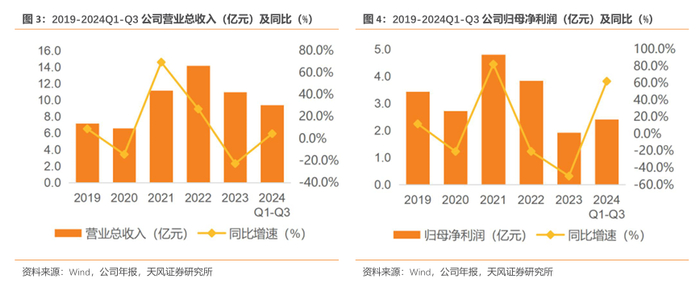 维生素D3市场价格从50元/公斤低位反弹跃升至2024Q3的250元/公斤。2024Q1-Q3,花园生物实现累计营收9.38亿元,归母净利润2.41亿元。依托全产业链布局优势,公司在成本控制和市场拓展上展现市场适应能力与复苏潜力,预计未来增长态势将得以延续。