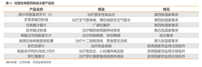 明晰高技术壁垒制剂、顺应医改政策及市场需求,加速高端仿制药研发和产品布局。2011年,花园生物完成了对花园药业100% 股权的收购,使其成为全资子公司。通过此次收购,花园生物在原有维生素D3产业链的基础上,进一步拓展至心血管、神经系统等慢性疾病领域。