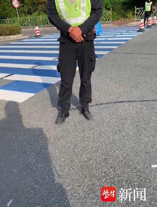 保安在卡口拦截外卖员