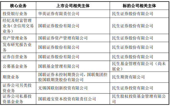 国联证券及其子公司、民生证券及其子公司的核心业务及实施主体情况如下: